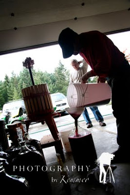 With winter quickly approaching– pretty laughable coming from someone who lives in the Bay Area– I had to post these images from our recent vacation to the Northwest to visit our family. My in-laws have a small farm and my father-in-law tends to his vineyard and harvests pinot grapes each fall. I had heard a lot about it and I was delighted to see part of the wine making process. There is so much precision that goes into making a fine wine. For example the grapes must not be picked until they reach a certain acidity. If there is the threat of rain, it’s sort of a ready or not situation (a rain or frost will damage your crop). The grapes are pressed and then sit in tubs and ferment for quite some time, again until the chemistry is as it should be. Once it is ready, the wine is then extracted and ready to sit in large jars until they are ready to be bottled. My Father-in-law’s wine makes me think of the experience of the Philosophy Professor in the old film, The Bishop’s Wife. The angel, played by the lovely Cary Grant, has touched the professors wine so that it inspires yet does not inebriate regardless of how much the professor drinks! My Father-in-law makes some of the best wine that I have every tasted and I don’t end up with a headache or feeling queasy. While we missed the harvest by two days, we were around for the second half. Here a some photos from the event. Cheers!